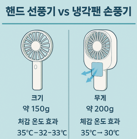 2️⃣ 일반 핸드 선풍기와 냉각팬 손풍기의 차이점