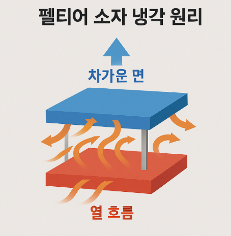 냉각팬 손풍기의 핵심은 펠티어 소자입니다. 펠티어 소자는 전류가 흐르면 한쪽 면이 급격히 차가워지고 반대편이 뜨거워지는 특수한 반도체 소자입니다. 냉각판이 피부의 열을 흡수하고, 팬이 뜨거운 면의 열을 외부로 배출하여 지속적으로 차가운 상태를 유지하게 됩니다.