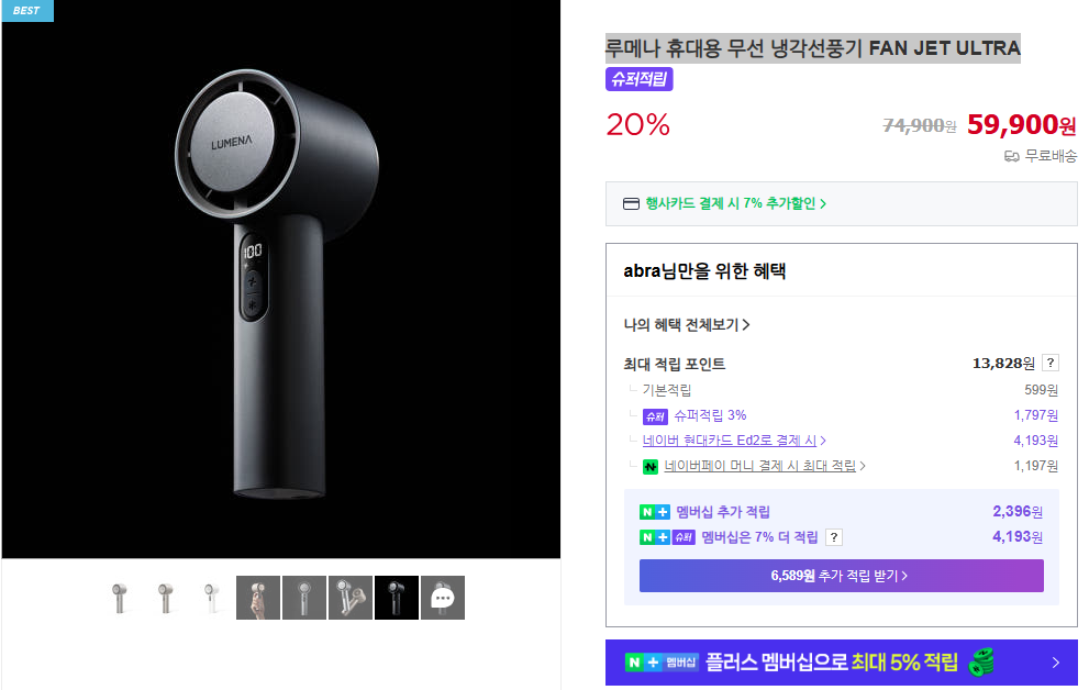 - 루메나 휴대용 무선 냉각선풍기 FAN JET ULTRA