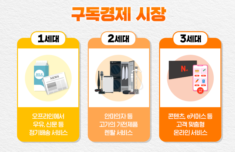 구독 서비스는 음악, 영화 스트리밍을 넘어 식료품, 의류, 뷰티박스, 심지어 자동차까지 확대되고 있습니다. 일정 요금을 지불하면 다양한 제품과 서비스를 경험할 수 있어 경제적이고 편리하다는 점에서 인기를 얻고 있습니다. 이는 정기적으로 새로운 것을 경험하고자 하는 소비자 욕구를 충족시킵니다.