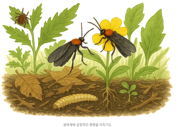 - 애벌레: 유기물 분해에 기여하며 약 2~3개월 동안 지표면 아래에서 생활